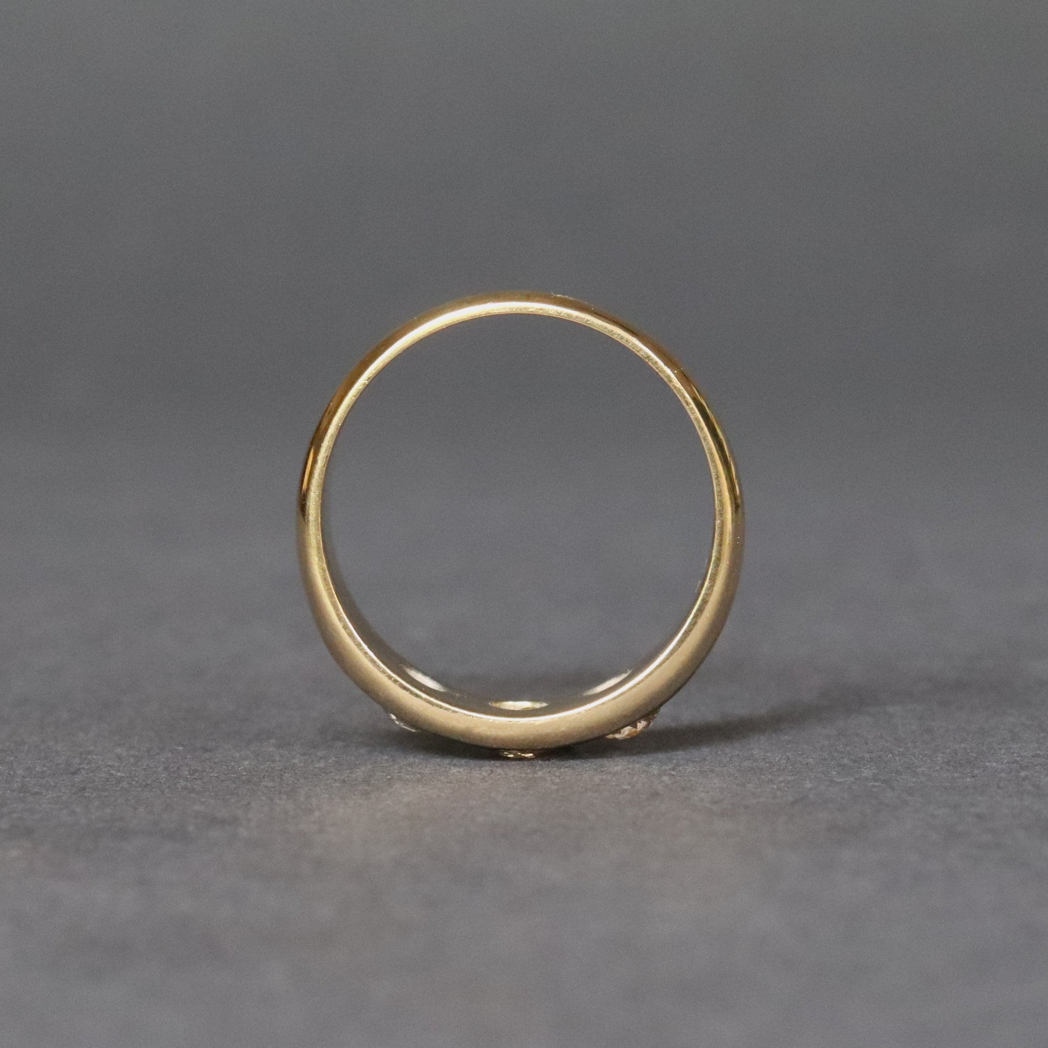 Measurements (approximate): Band is 6mm at widest point, narrowing to 3mm at the rear. Largest diamond is approximately 0.2 carat weight; the two flanking diamonds are approximately 0.1 carat weight each.