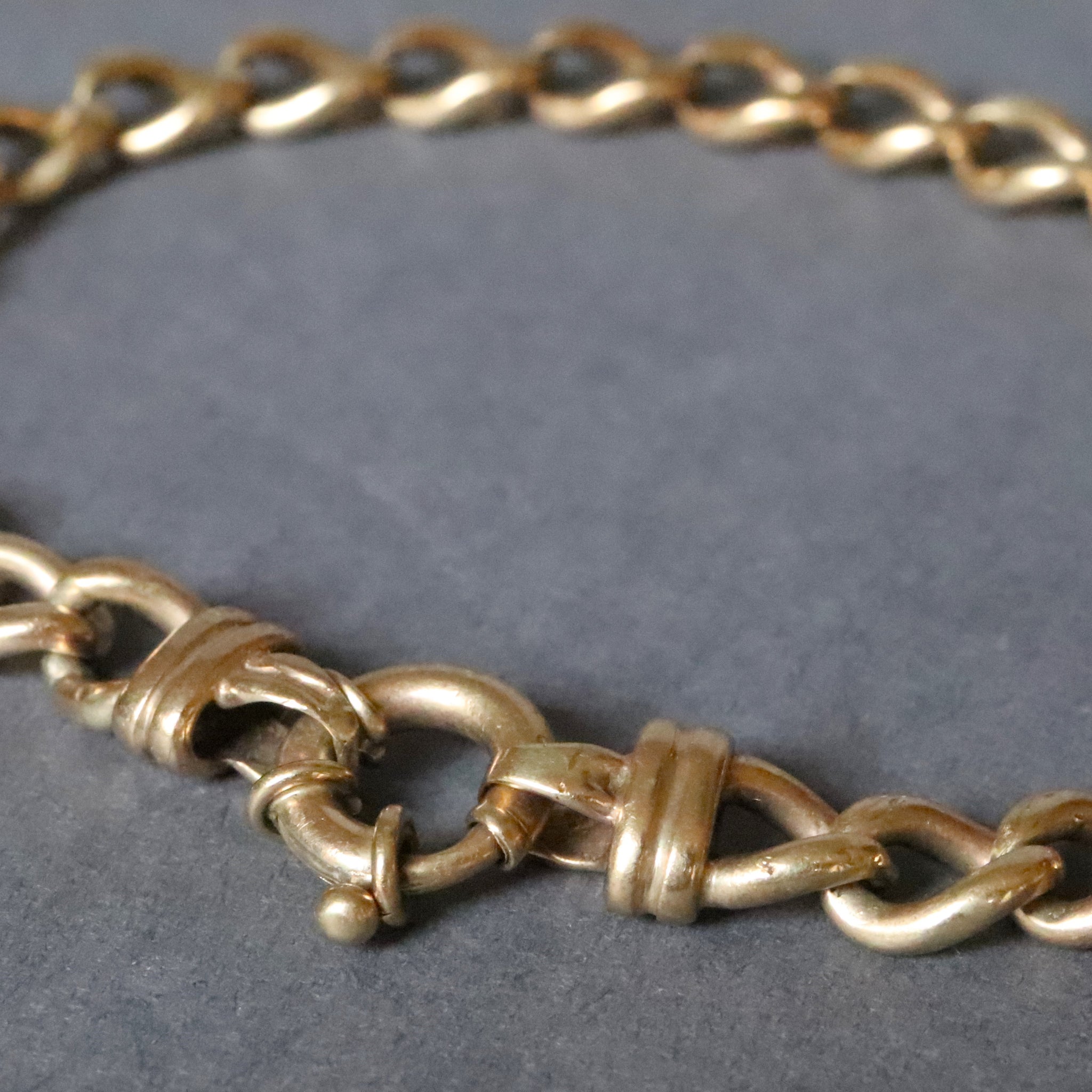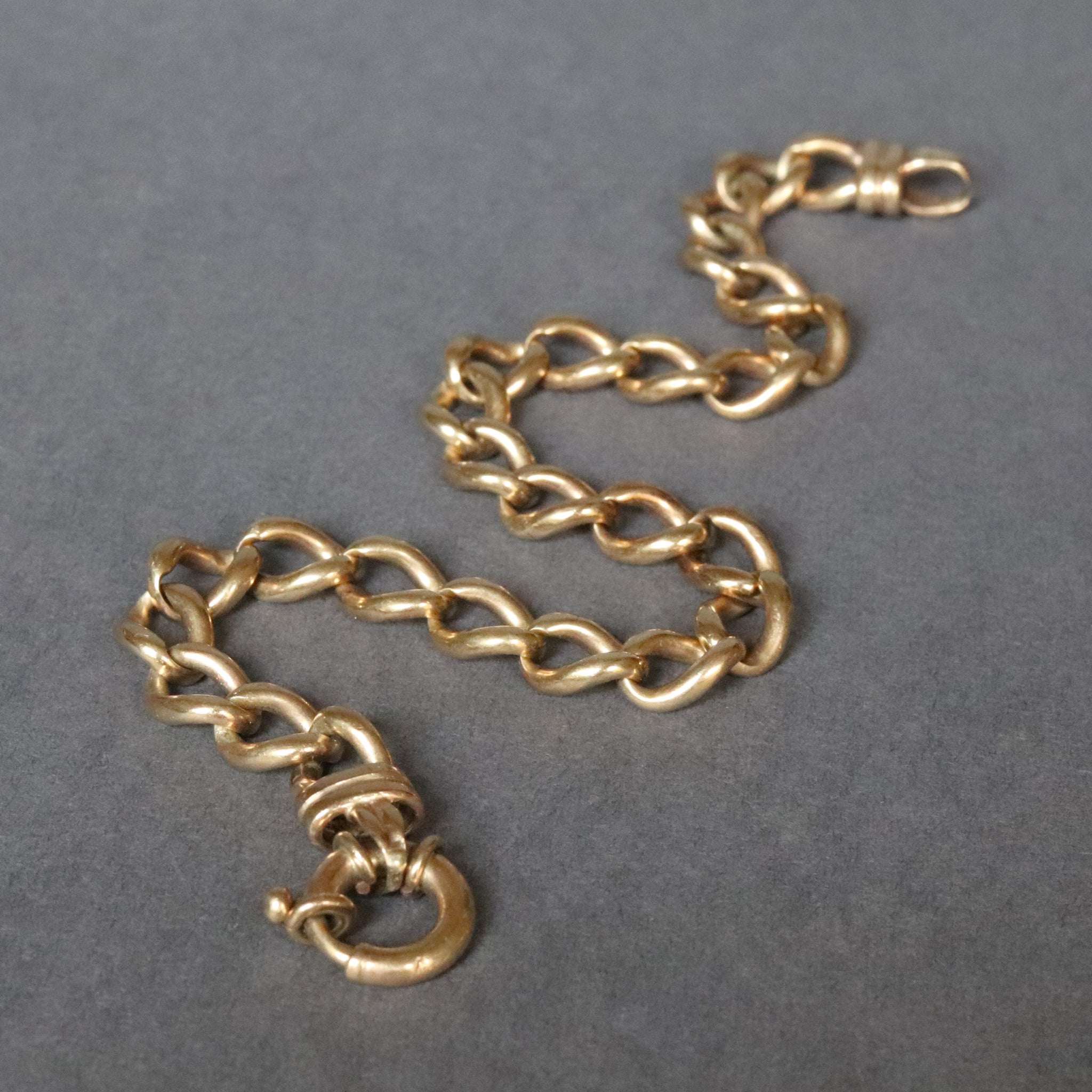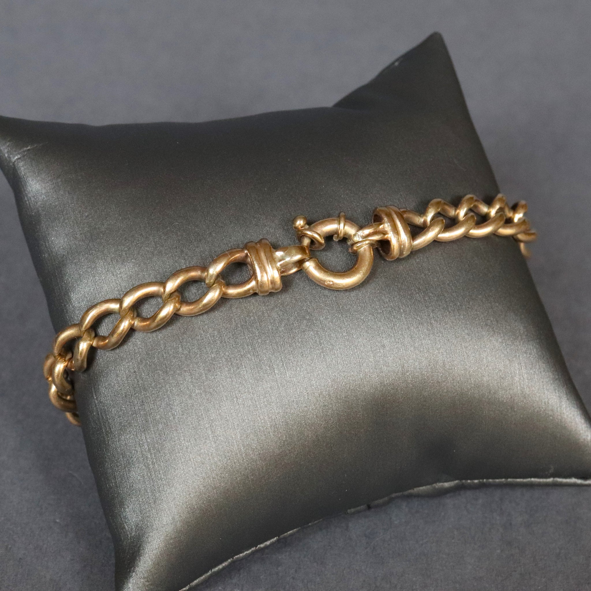 Condition: Good, with wear commensurate with age. The links have general light marks and some thinning where they meet due to contact. Clasp functions well. Please see pictures for details and don't hesitate to ask questions.