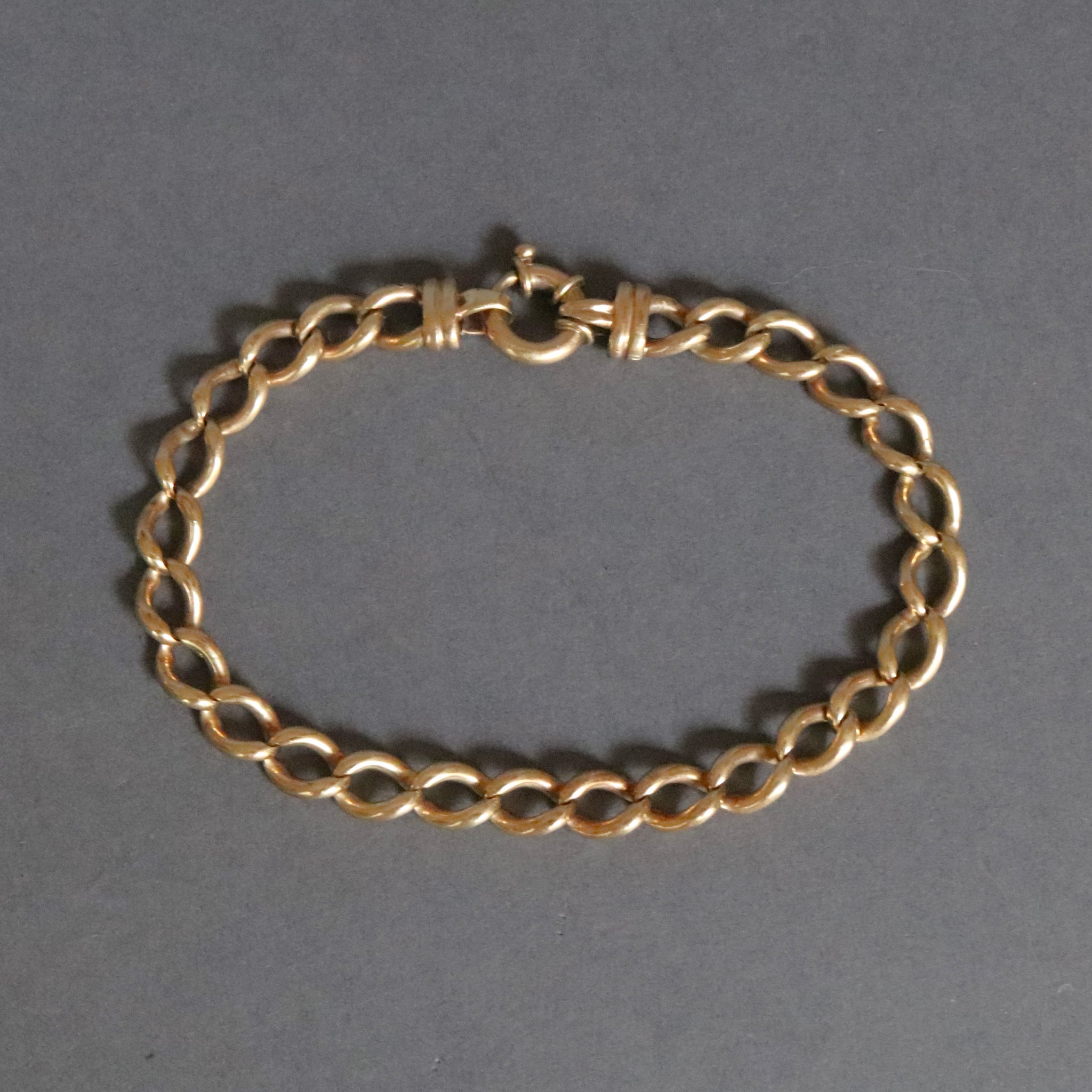 Stamped '375' to the clasp for 9ct gold. Links are gilt.
